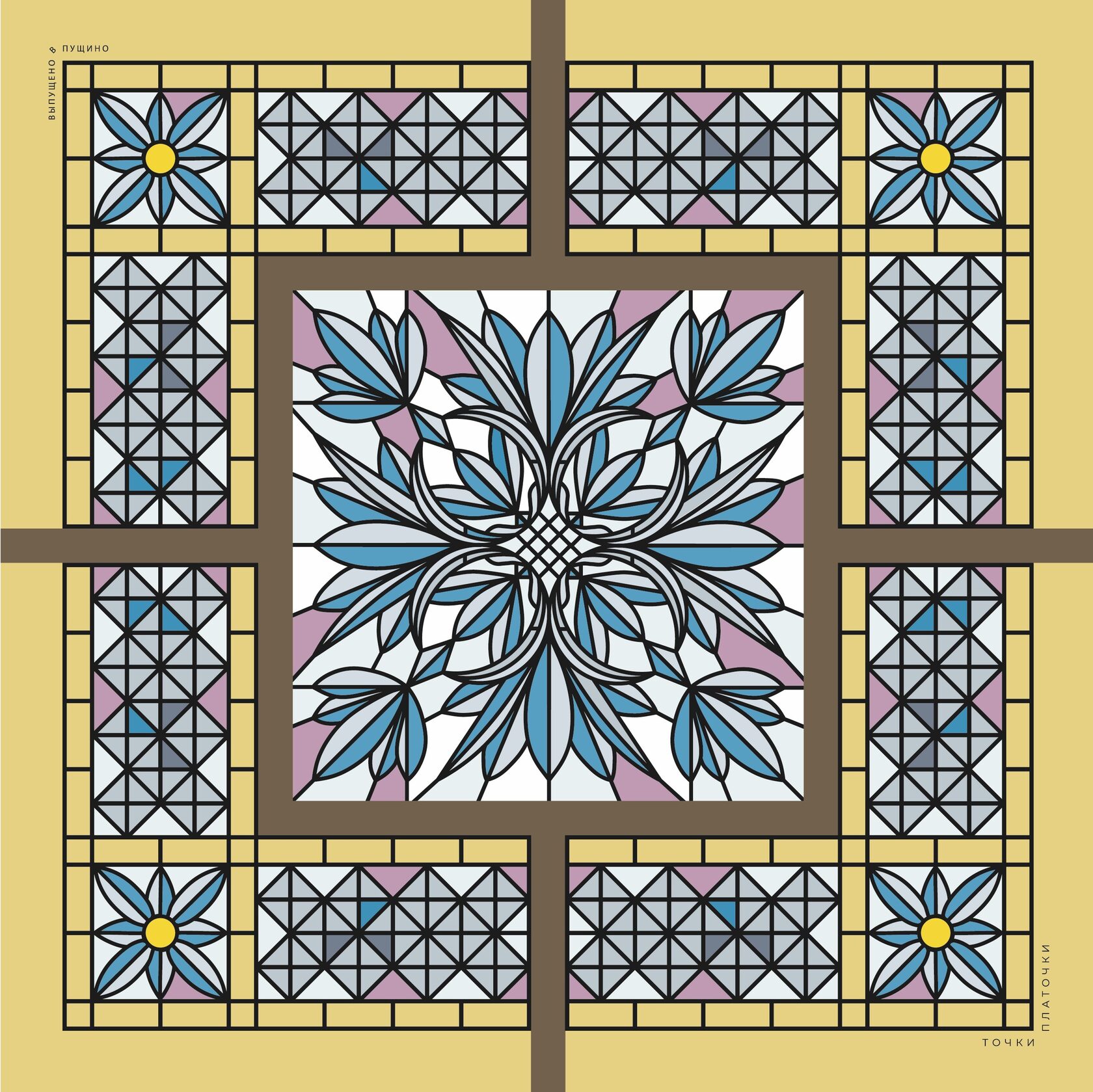 Каждый принт — это целая история, отражающая элементы сохранившихся и утраченных фасадов, витражей, мозаик и барельефов Пущино. И не только